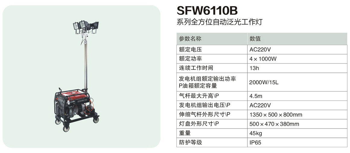 當(dāng)前位置: 首頁 > 產(chǎn)品中心 > 移動(dòng)照明系列 > SFW6110B系列全方位自動(dòng)泛光工作燈