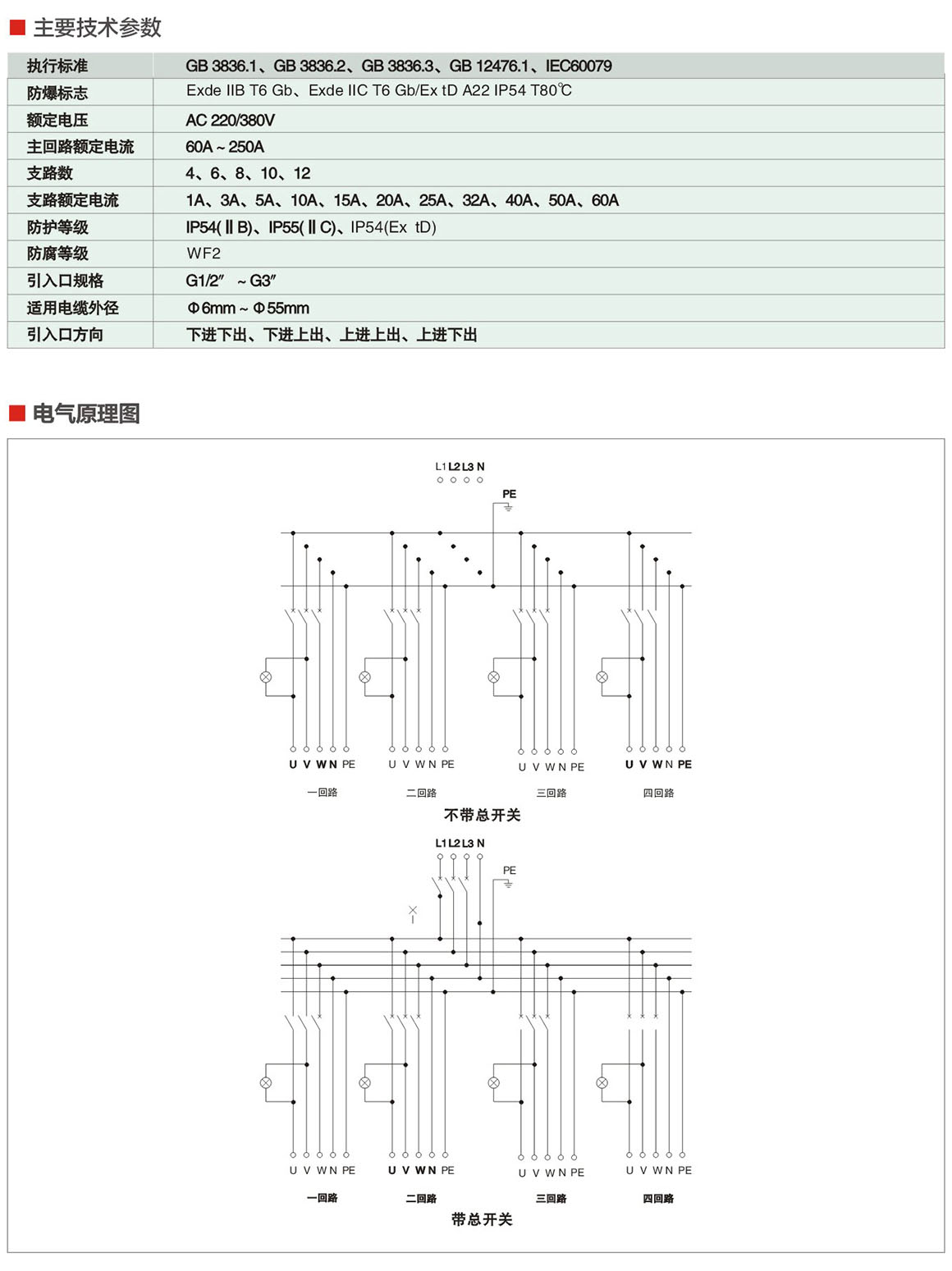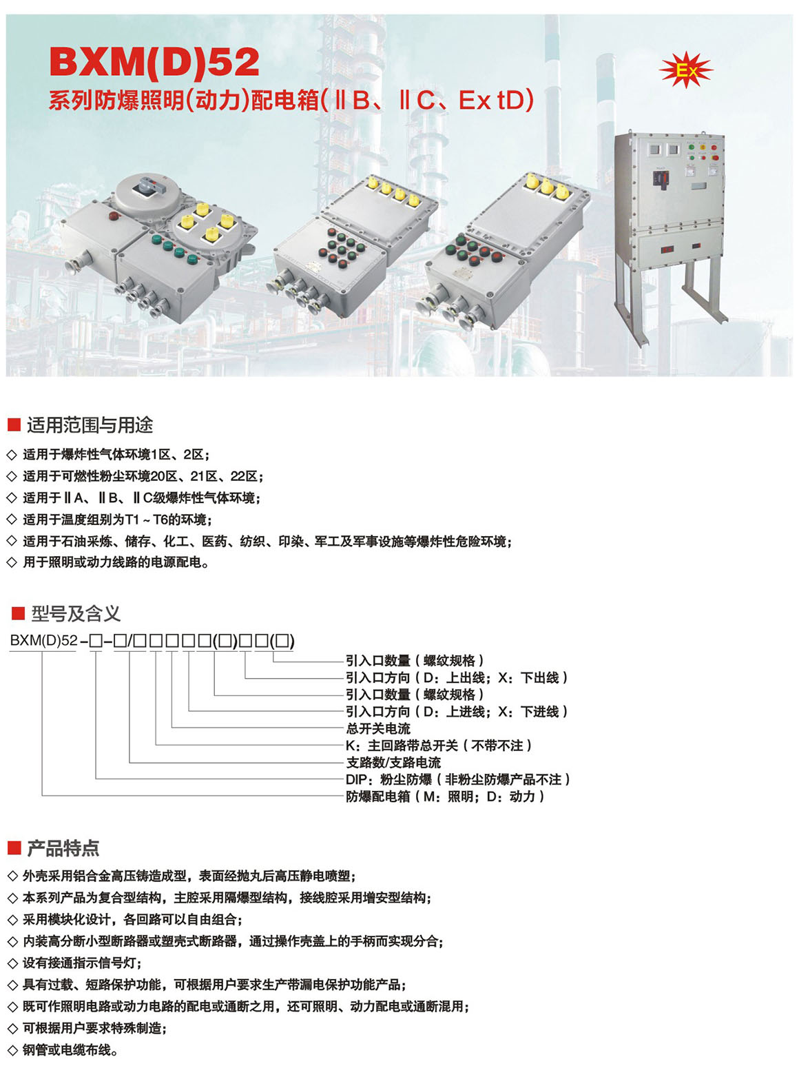 BXM(D)52系列防爆照明(動(dòng)力)配電箱(ⅡB、ⅡC、Ex tD)