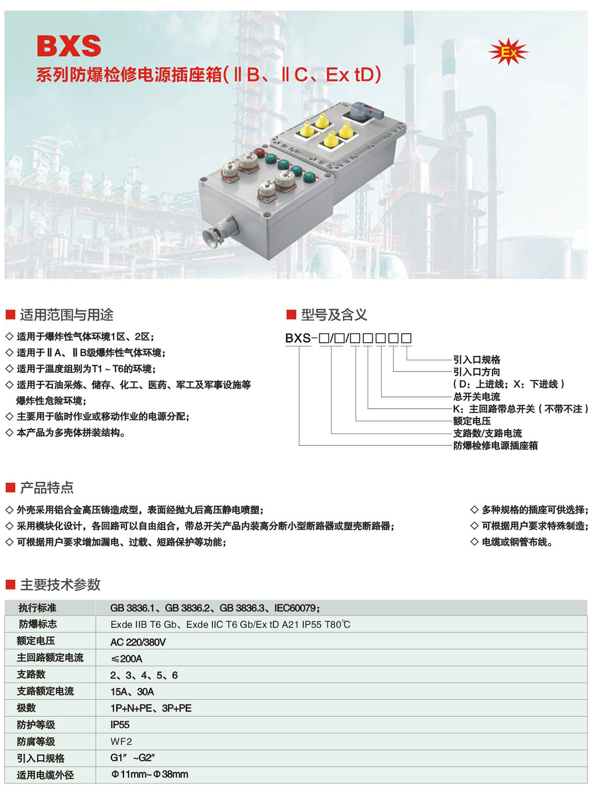 BXS系列防爆檢修電源插座箱(ⅡB、ⅡC、Ex tD)