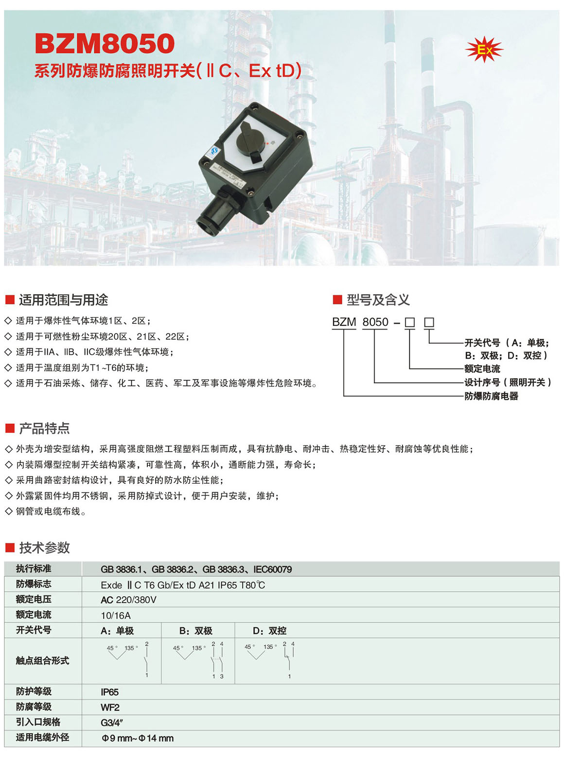 當(dāng)前位置: 首頁 > 產(chǎn)品中心 > 防爆防腐電器系列 > BZM8050系列防爆防腐照明開關(guān)(ⅡC、Ex tD)