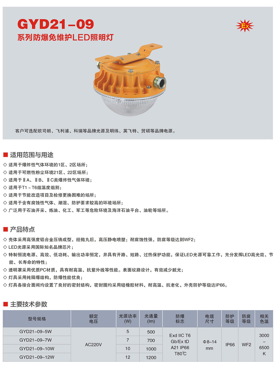 GYD21-09 系列防爆免維護(hù)LED照明燈