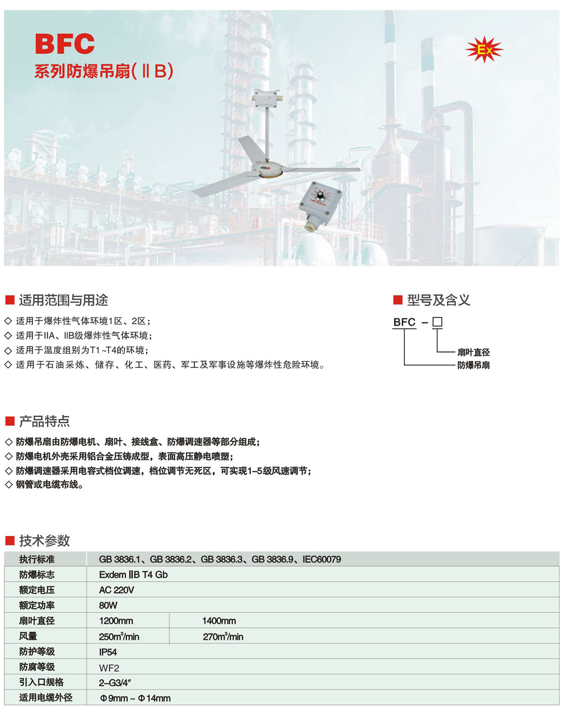 當(dāng)前位置: 首頁 > 產(chǎn)品中心 > 防爆風(fēng)機(jī)、管件系列 > BFC系列防爆吊扇(ⅡB)