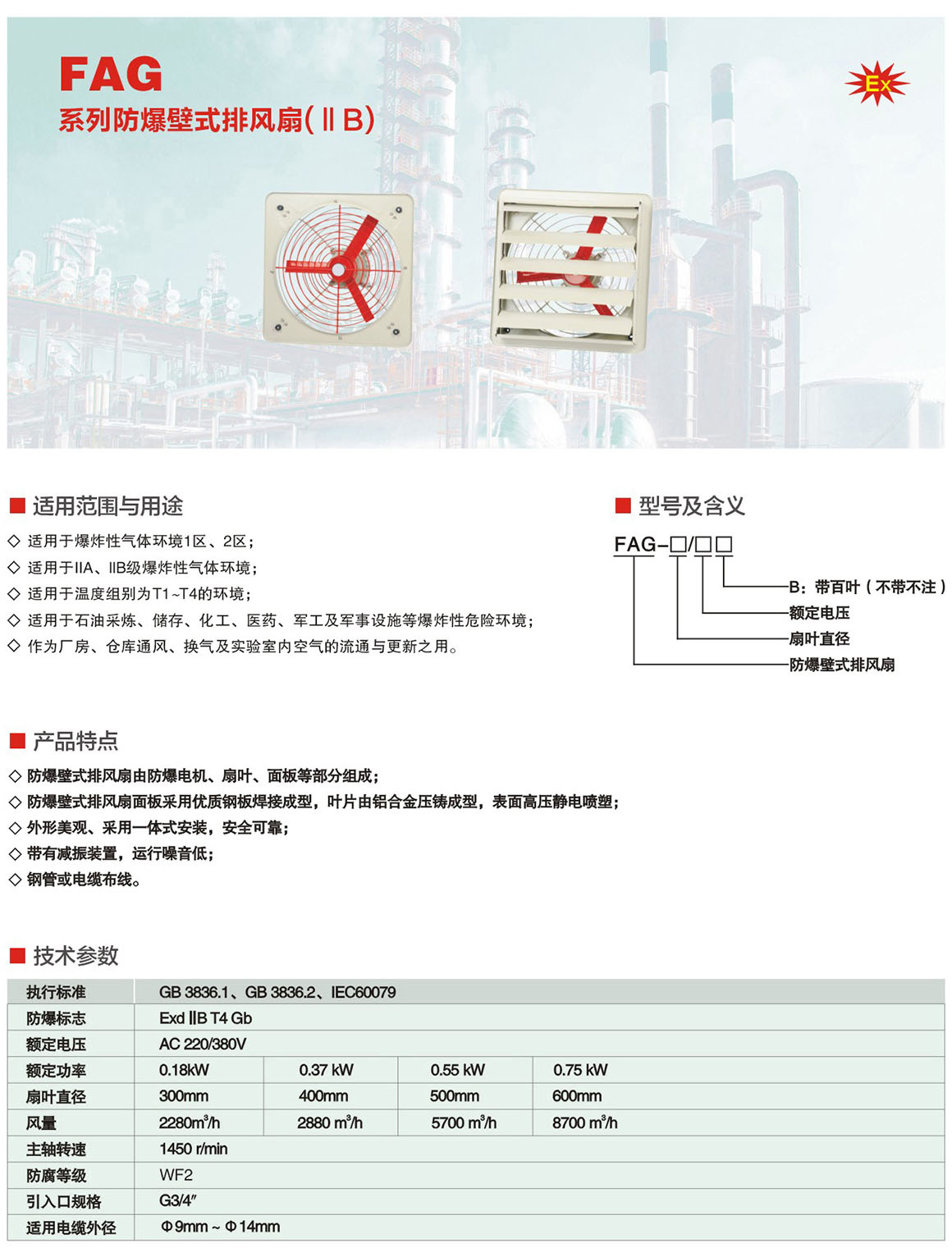 FAG系列防爆壁式排風(fēng)扇(ⅡB)