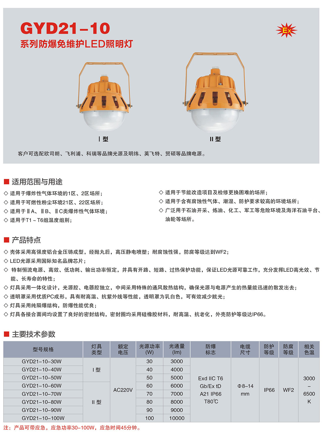 GYD21-10 系列防爆免維護(hù)LED照明燈