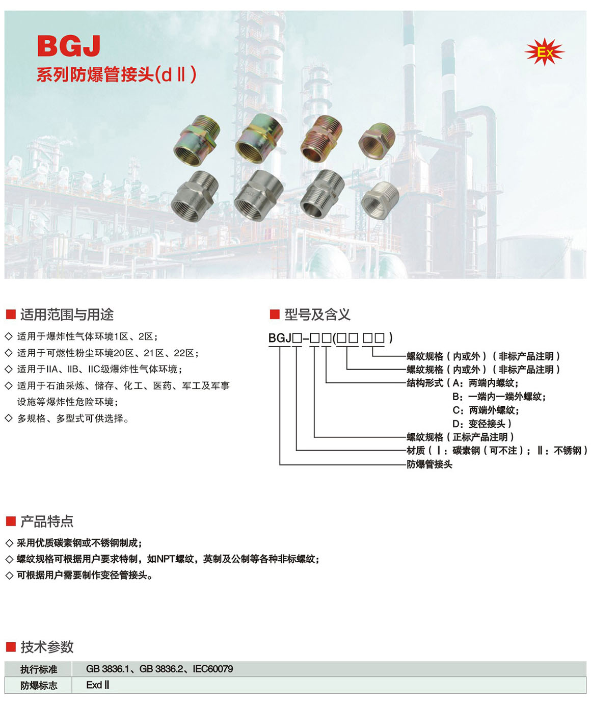 當(dāng)前位置: 首頁(yè) > 產(chǎn)品中心 > 防爆風(fēng)機(jī)、管件系列 > BGJ系列防爆管接頭(dⅡ)