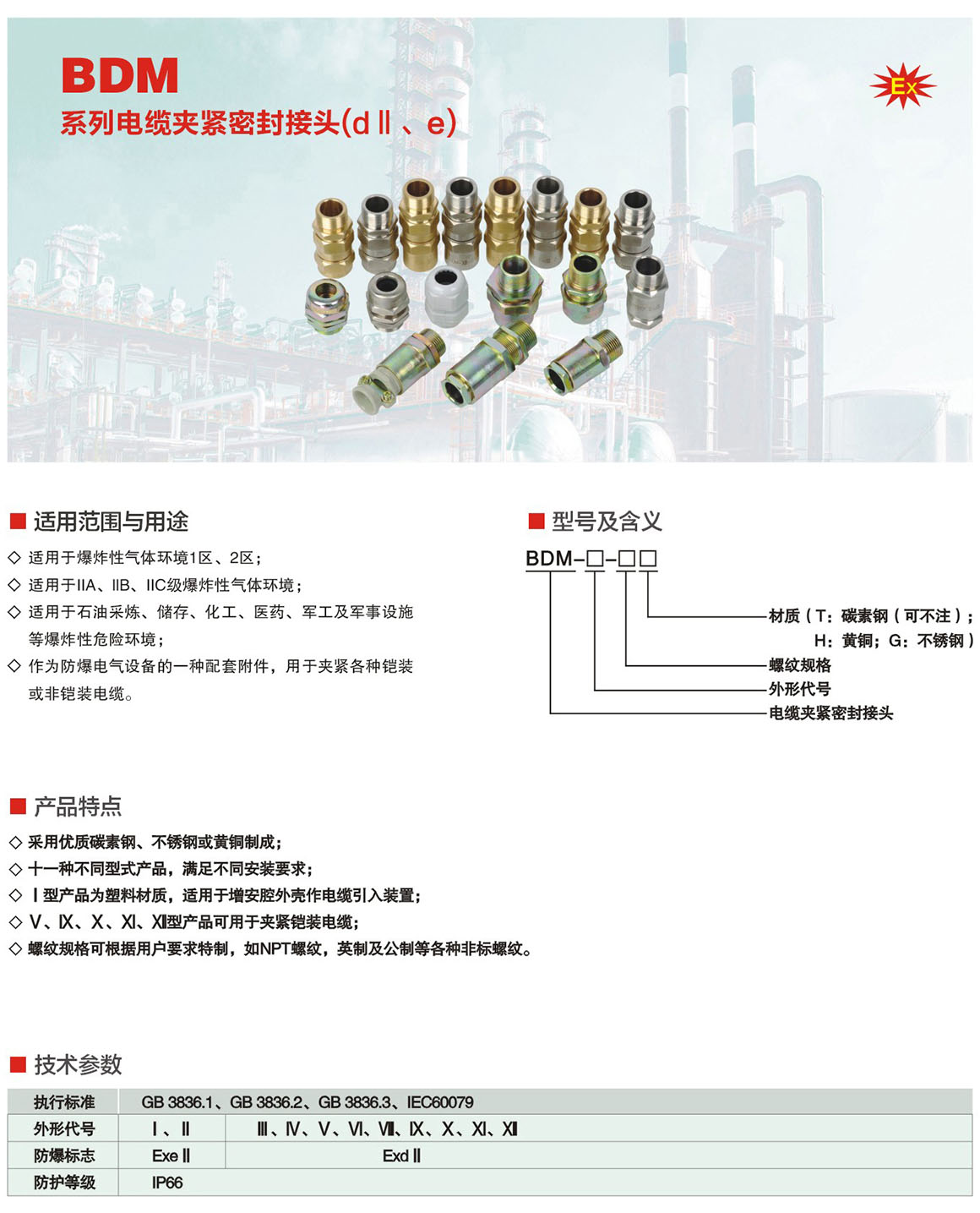 當(dāng)前位置: 首頁(yè) > 產(chǎn)品中心 > 防爆風(fēng)機(jī)、管件系列 > BDM系列電纜夾緊密封接頭(dⅡ、e)