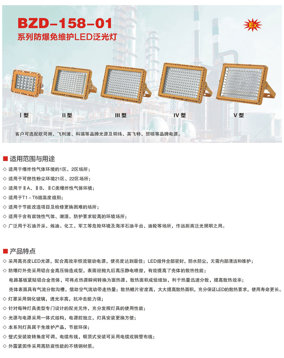 當(dāng)前位置: 首頁 > 產(chǎn)品中心 > 防爆(三防)免維護(hù)LED燈具系列 > BZD-158-01系列防爆免維護(hù)LED泛光燈(ⅡC)