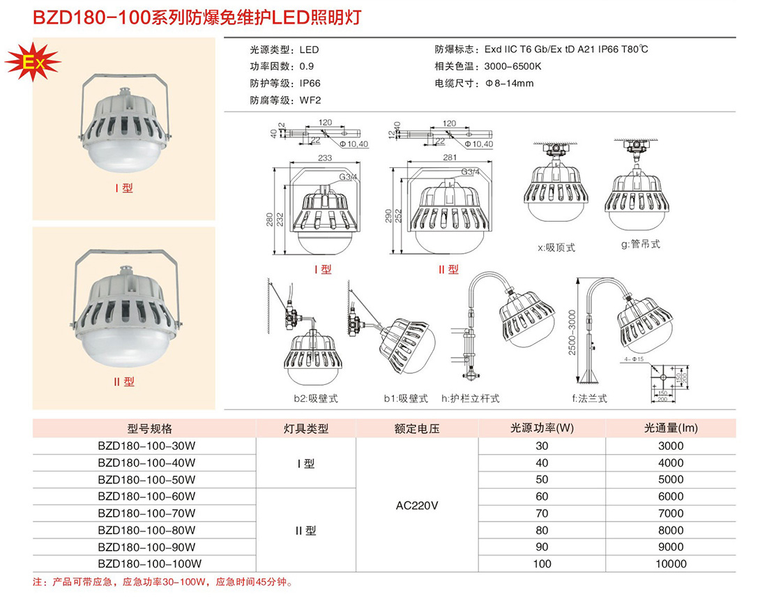 免維護(hù)LED防爆照明燈BZD180-100 Ⅰ型