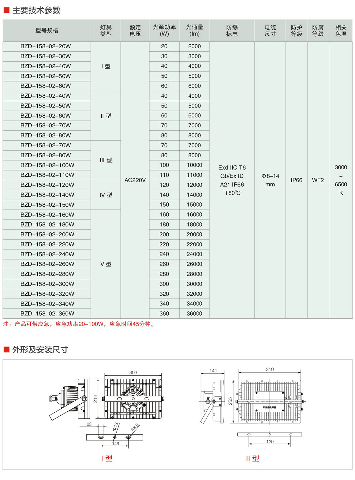 BZD-158-02系列防爆免維護(hù)LED泛光燈(ⅡC)