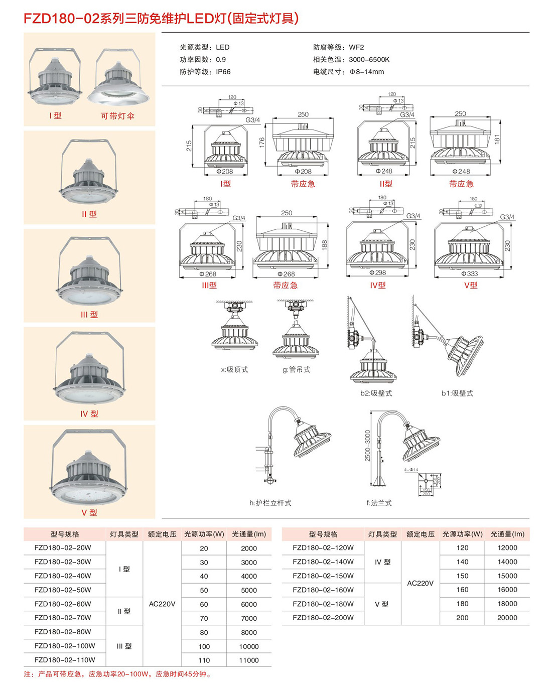 三防免維護(hù)LED燈(固定式燈具)FZD180-02 Ⅱ型