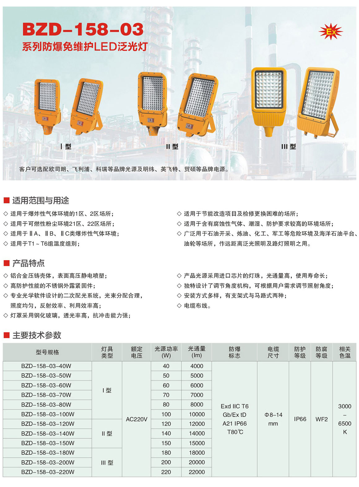 當前位置: 首頁 > 產(chǎn)品中心 > 防爆(三防)免維護LED燈具系列 > BZD-158-03系列防爆免維護LED泛光燈(ⅡC)