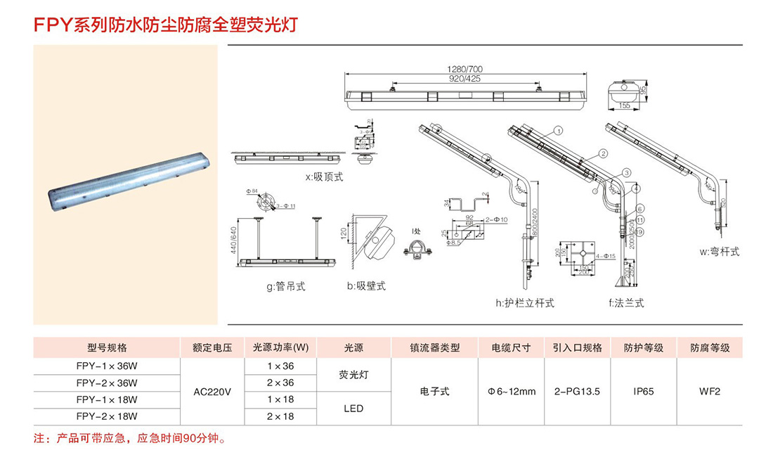 當前位置: 首頁 > 產(chǎn)品中心 > 三防燈具(金鹵燈、鈉燈)系列 > FPY防水防塵防腐全塑熒光燈