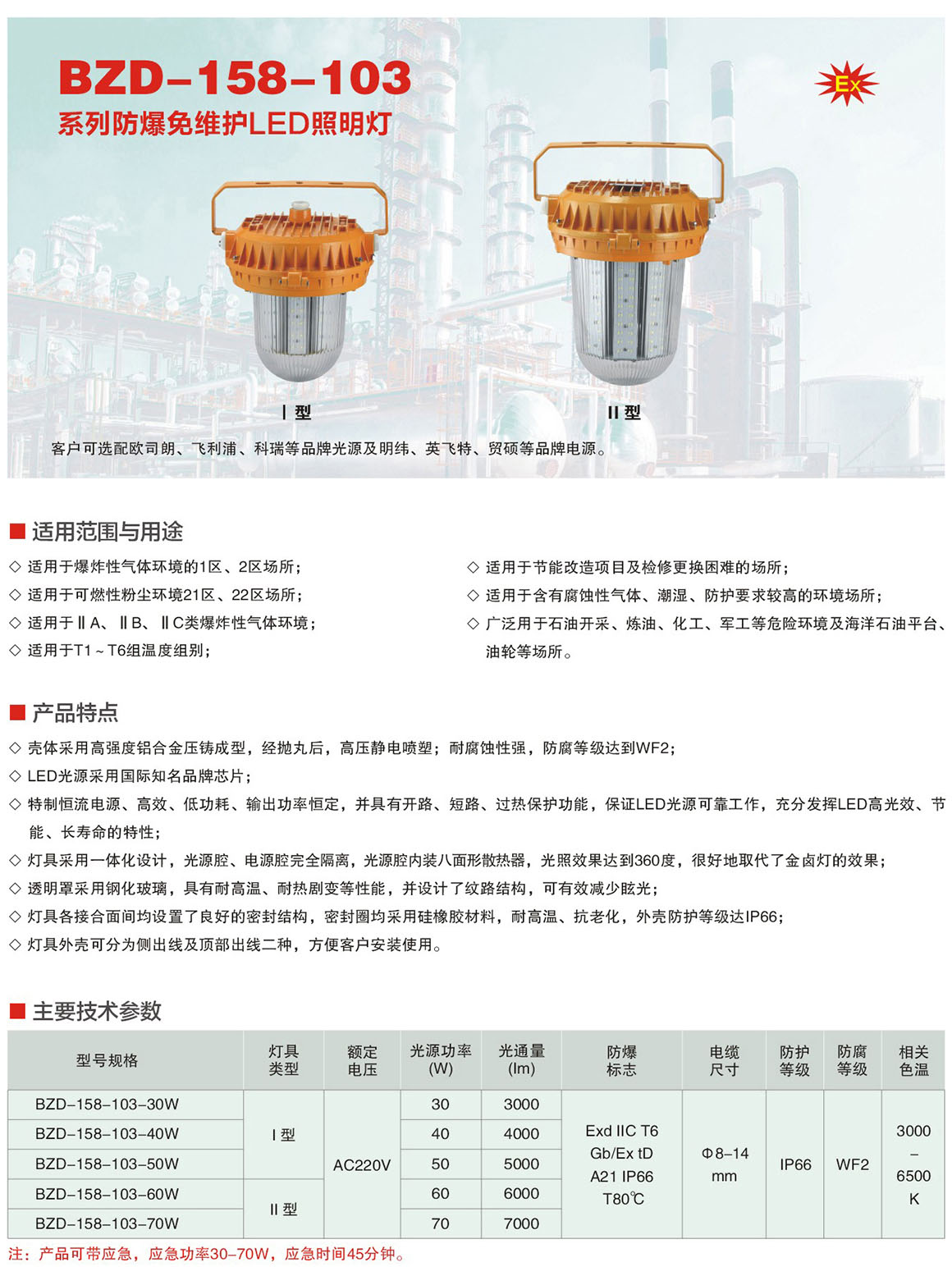當(dāng)前位置: 首頁 > 產(chǎn)品中心 > 防爆(三防)免維護(hù)LED燈具系列 > BZD-158-103系列防爆免維護(hù)LED照明燈(ⅡC)