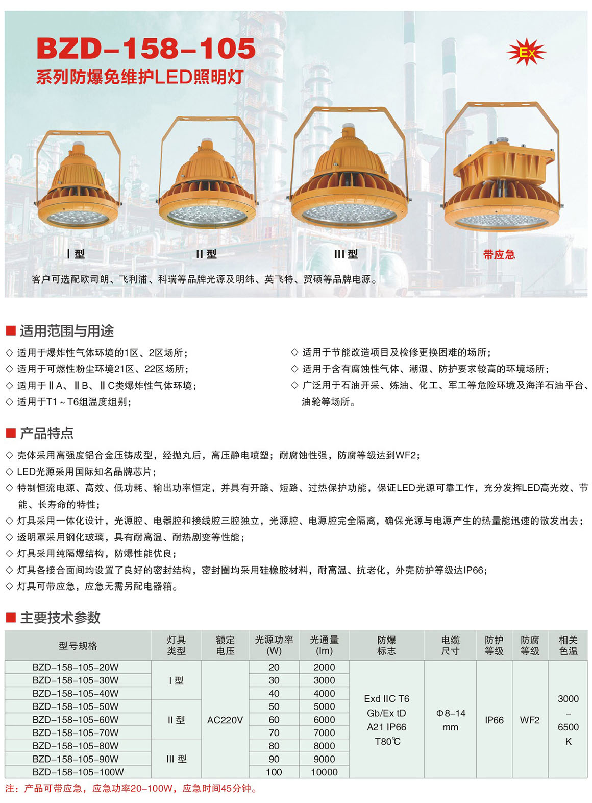 BZD-158-105系列防爆免維護(hù)LED照明燈(ⅡC)