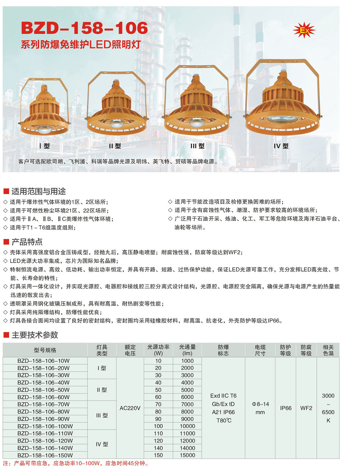 當前位置: 首頁 > 產(chǎn)品中心 > 防爆(三防)免維護LED燈具系列 > BZD-158-106系列防爆免維護LED照明燈(ⅡC)