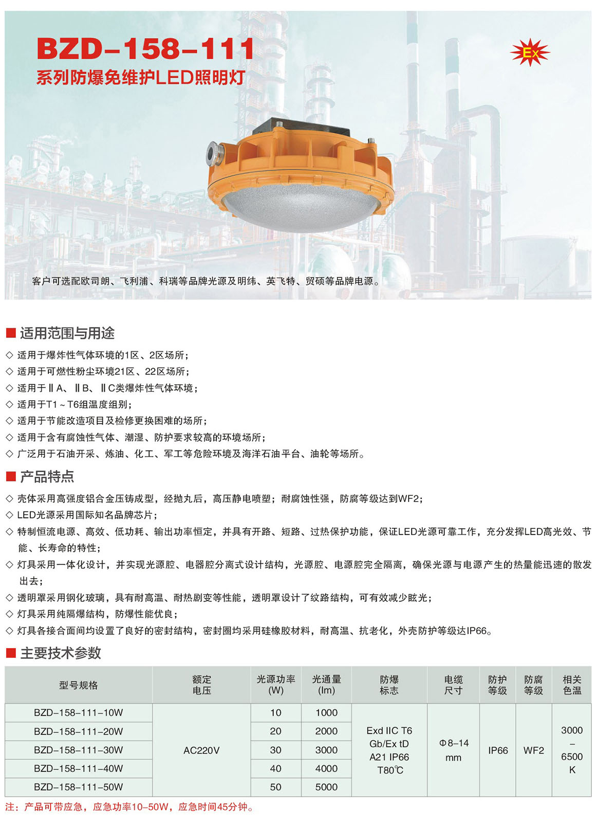 BZD-158-111系列防爆免維護(hù)LED照明燈(ⅡC)