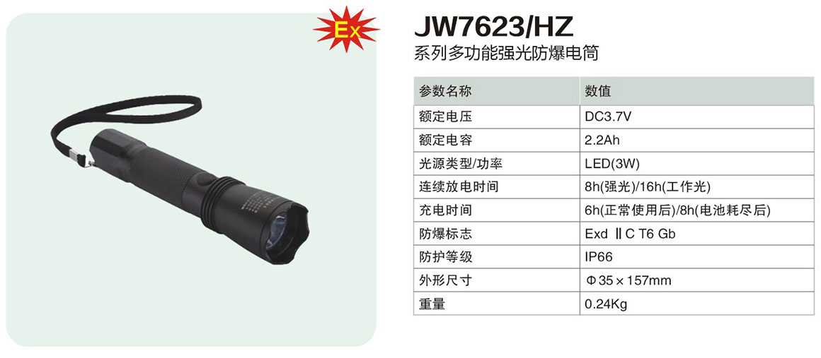 JW7623/HZ系列多功能強(qiáng)光防爆電筒(ⅡC)