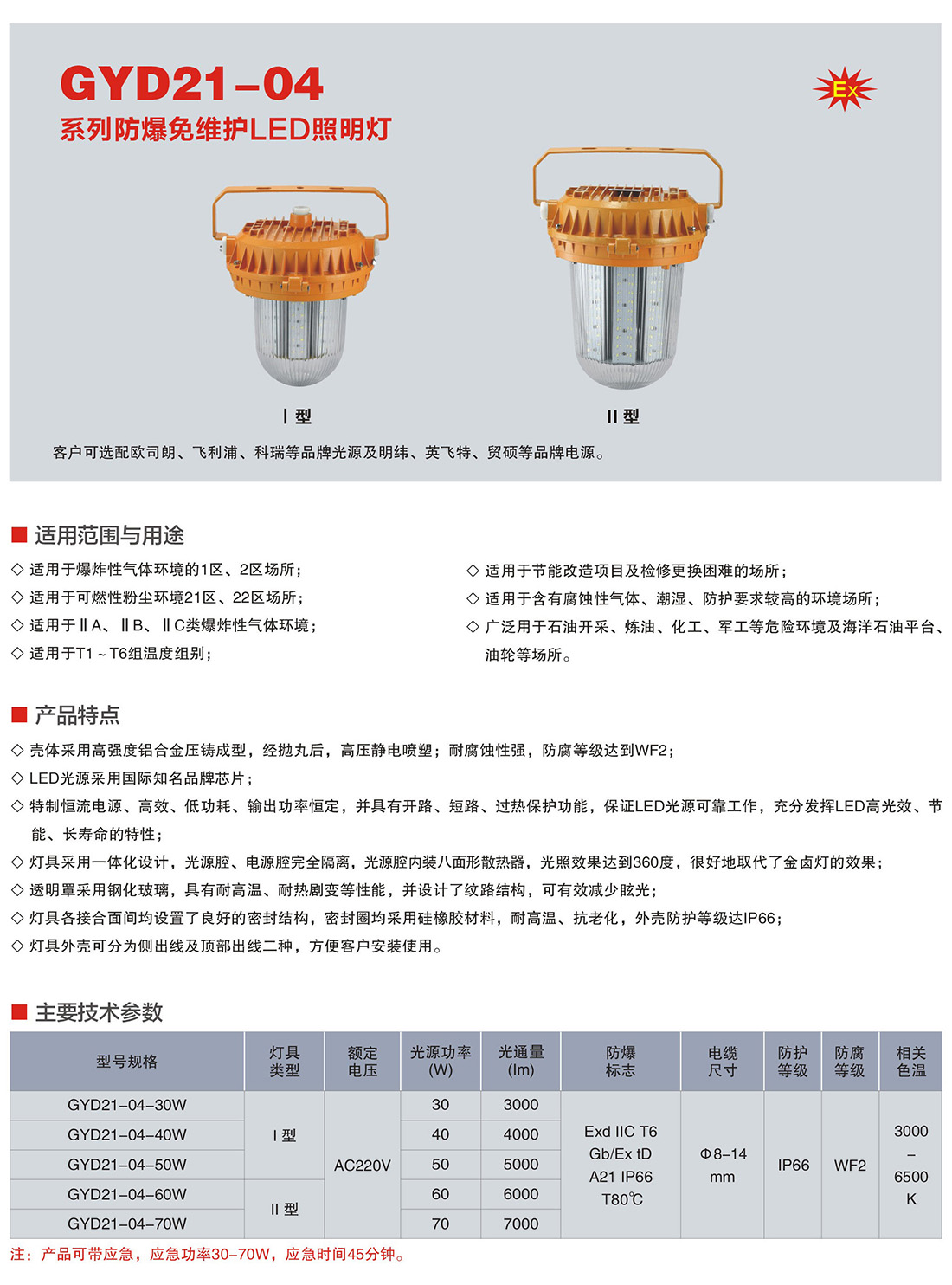 GYD21-04 系列防爆免維護(hù)LED照明燈