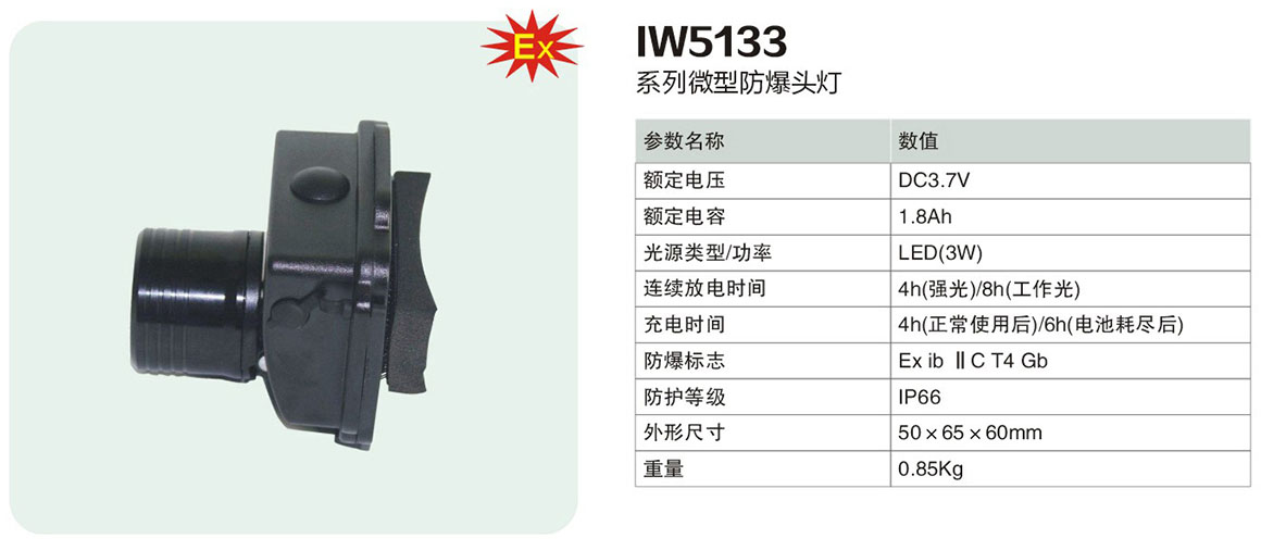 IW5133系列微型防爆頭燈(ⅡC)