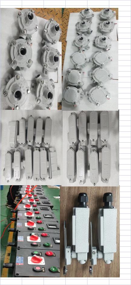 防爆接頭選型分類 防爆插銷BCX53-16, 防爆插銷BCX53-32, 防爆插接裝置BCZ54-16,防爆插接裝置BCZ54-32,防爆插接裝置BCZ54-63,防爆插接裝置BCZ54-100, 防爆接線盒BHA-G1/2”一平, 防爆接線盒BHD51-G1/2”二平, 防爆接線盒BHD51-G1/2”三平, 防爆接線盒BHD51-G1/2”四平, 防爆接線盒BHD51-G1/2”角平, 防爆接線盒BHD51-G1/2”一吊, 防爆接線盒BHD51-G1/2”二吊, 防爆接線盒BHD51-G1/2”三吊, 防爆接線盒BHD51-G1/2”四吊,防爆接線盒BHD51-G1/2”角吊, 防爆接線盒BHD51-G3/4”一平, 防爆接線盒BHD51-G3/4”二平, 防爆接線盒BHD51-G3/4”三平, 防爆接線盒BHD51-G3/4”四平, 防爆接線盒BHD51-G3/4”角平, 防爆接線盒BHD51-G3/4”一吊, 防爆接線盒BHD51-G3/4”二吊, 防爆接線盒BHD51-G3/4”三吊,防爆接線盒BHD51-G3/4”四吊, 防爆接線盒BHD51-G3/4”角吊, 防爆接線盒BHD51-G1”一平, 防爆接線盒BHD51-G1”二平, 防爆接線盒BHD51-G1”三平, 防爆接線盒BHD51-G1”四平, 防爆接線盒BHD51-G1”角平,接線盒大小有1/2寸到4寸,粉塵防爆接線盒BHD-DIP,后面的型號一樣。 防爆變電器BAB-0.4KW, 防爆變電器BAB-0.5KW, 防爆變電器BAB-1KW,防爆變電器BAB-2KW, 防爆排風扇BAF-400/220V, 防爆排風扇BAF-400/380V, 防爆排風扇BAT-3.15(220V,380V), 防爆空調(diào)BKC,防爆空調(diào)BKFR,BKGR 防爆接線箱BXJ51-20/4, 防爆接線箱BXJ51-20/8, 防爆接線箱BXJ51-20/16, 防爆接線箱BXJ51-20/32, 內(nèi)裝接線端子,電流大小,端子數(shù)量,進出線口大小/方向/數(shù)量可按用戶要求定制. 防爆撓性連接管BNGI,BNGII,BNGIII ![]() |